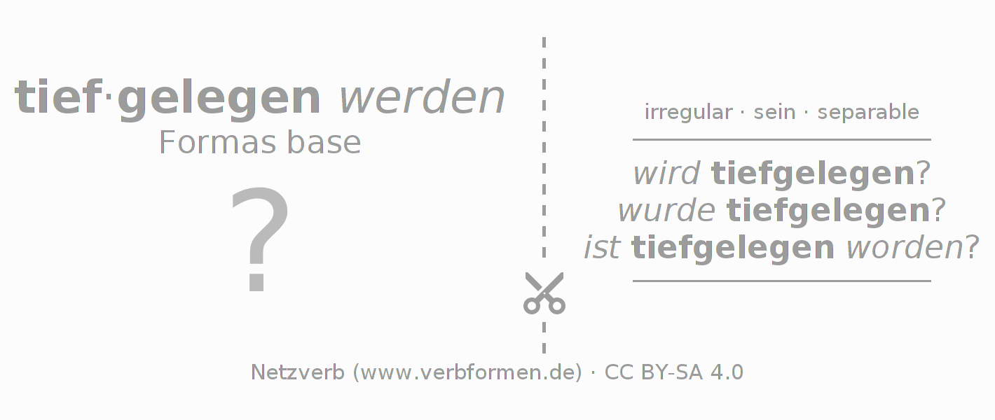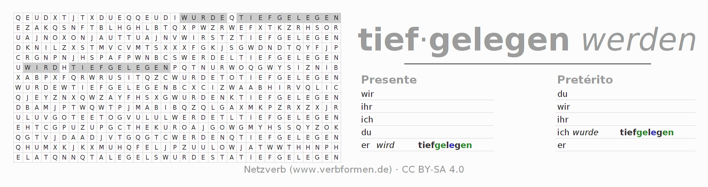 Las hojas de trabajo te ayudan para practicar con la conjugación de los verbos tiefliegen en la escuela o de forma autodidacta. El material de estudio es Open Educational Resources (OER), es decir, libre de licencias CC BY-SA 4.0 y pude ser descargado y utilizado de forma gratuita, por ejemplo para la escuela. Con este fin tenemos para ti varios tipos de hojas de trabajo para los verbos tiefliegen en forma de tablas de conjugación, acertijos y juegos. Todo el material esta disponible de forma gratuita para descargas PDF, imágenes y paginas web interactivas. Junto con los ejercicios hay innumerables ejemplos tiefliegen que te ayudan en el uso de los verbos.