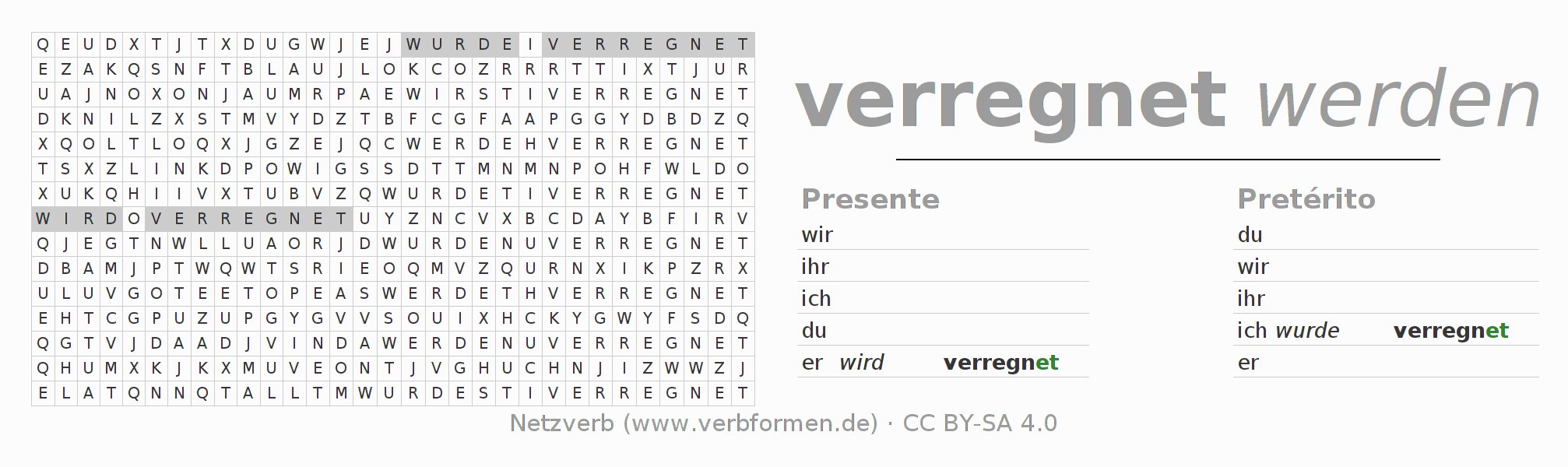 Juego de palabras cruzadas para todas las construcciones del verbo alemán verregnen (hat)