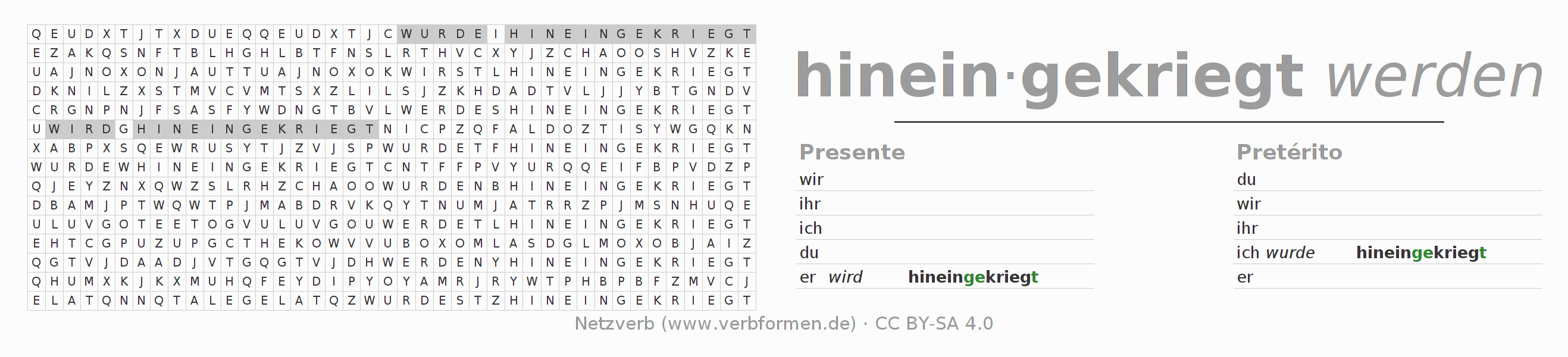 Hojas de trabajo para la conjugación del verbo hineinkriegen 〈Pasivo procesivo〉