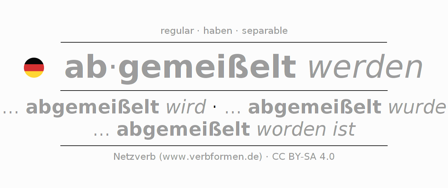 Las tablas de verbos muestran todas las construcciones del verbo abmeißeln de forma clara en una tabla.