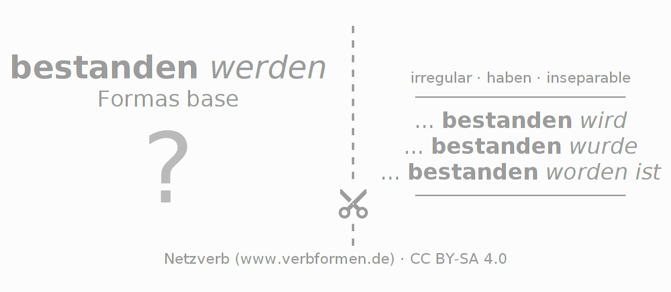 Las tablas de verbos muestran todas las construcciones del verbo bestehen de forma clara en una tabla.