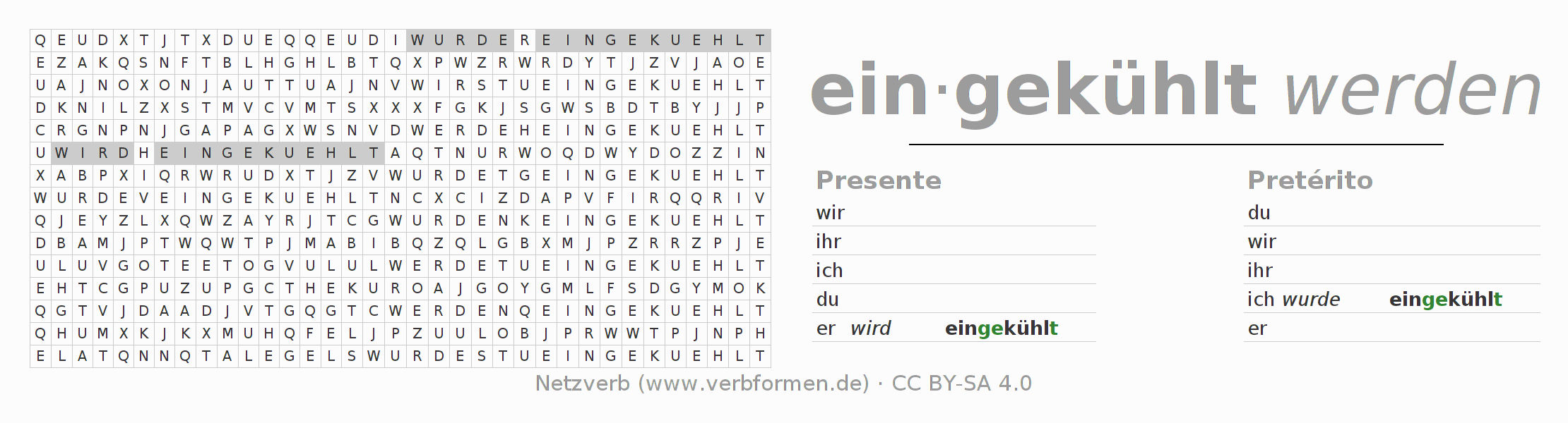 Juego de palabras cruzadas para todas las construcciones del verbo alemán einkühlen