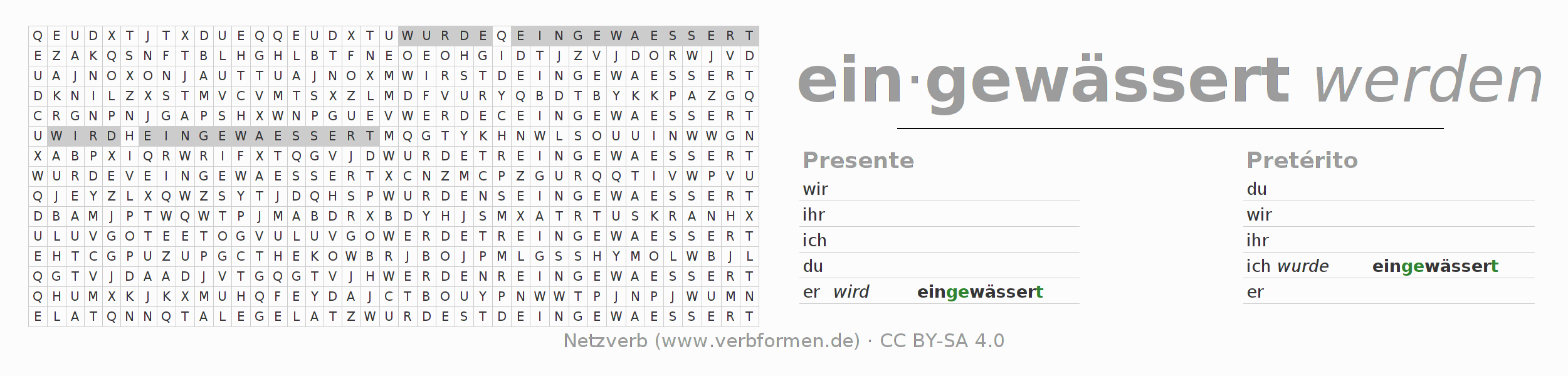Con este juego de palabras cruzadas puedes aprender de manera desafiante la conjugación del verbo alemán einwässern.