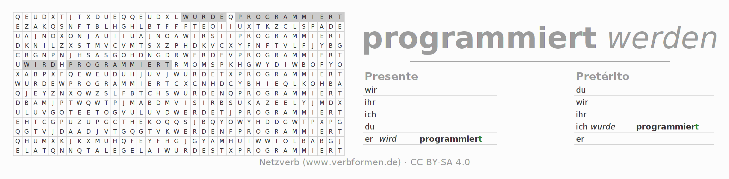 Juego de palabras cruzadas para todas las construcciones del verbo alemán programmieren