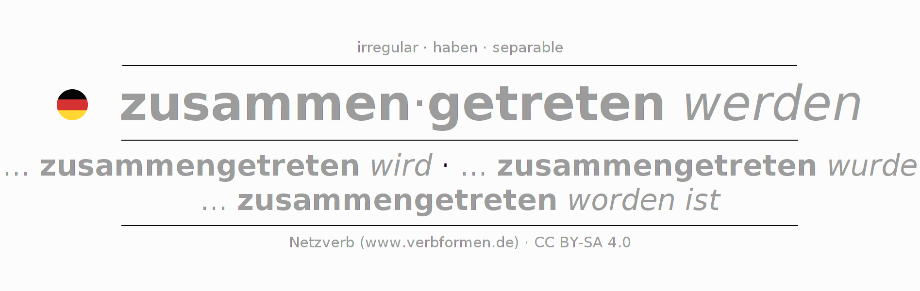 Las tablas de verbos muestran todas las construcciones del verbo zusammentreten de forma clara en una tabla.