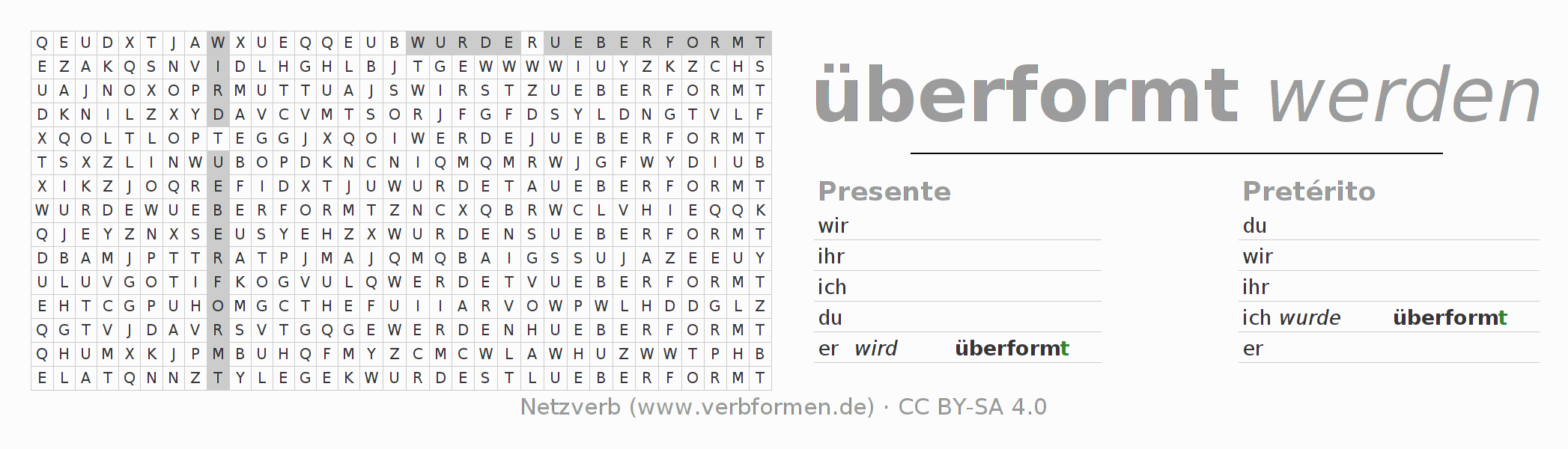 Hojas de trabajo para la conjugación del verbo überformen 〈Pasivo procesivo〉