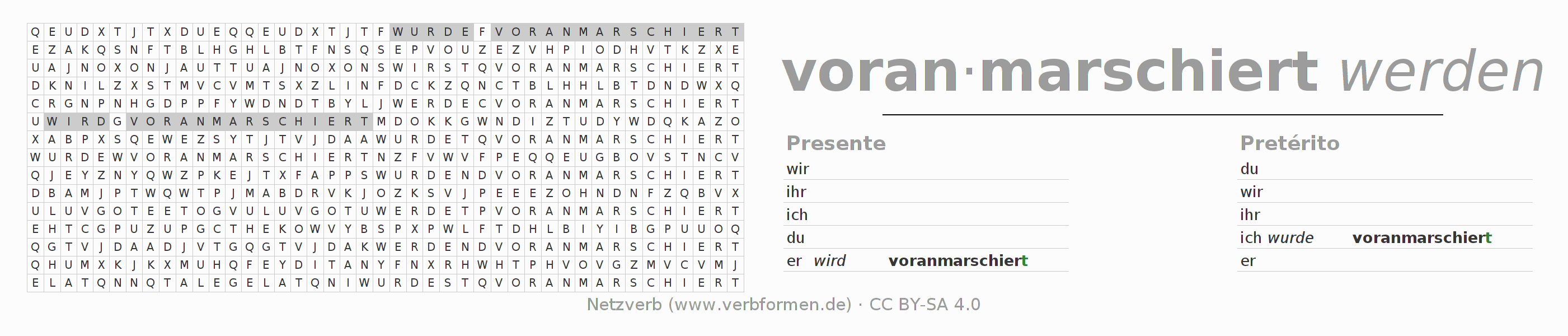 Hojas de trabajo para la conjugación del verbo voranmarschieren 〈Pasivo procesivo〉