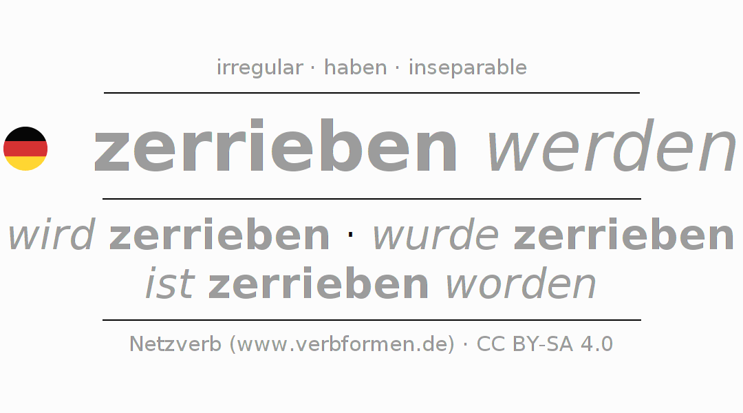 Las tablas de verbos muestran todas las construcciones del verbo zerreiben de forma clara en una tabla.