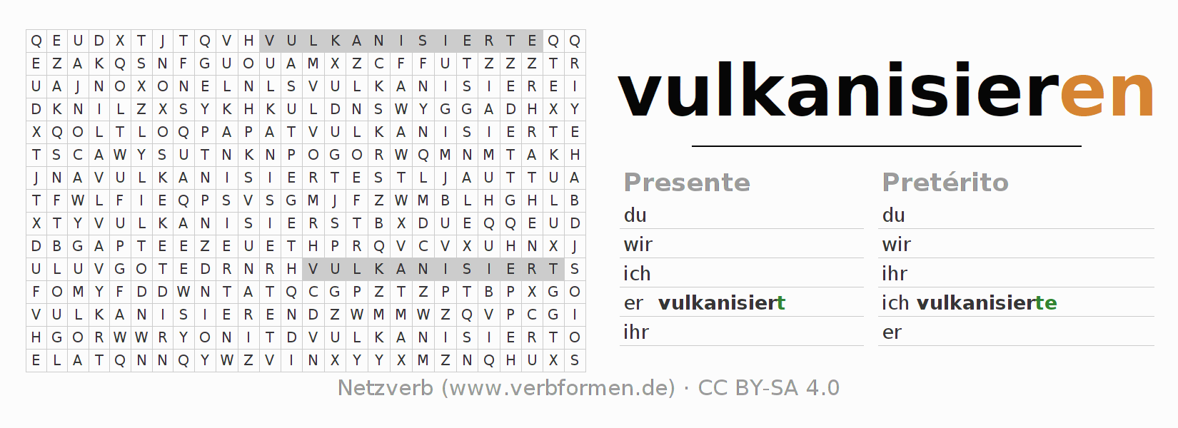 Hojas de trabajo para la conjugación del verbo vulkanisieren