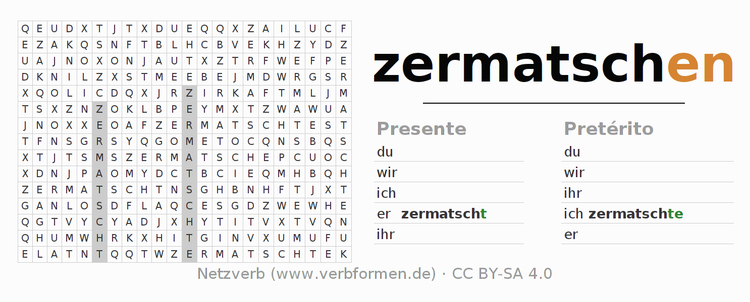 Hojas de trabajo para la conjugación del verbo zermatschen