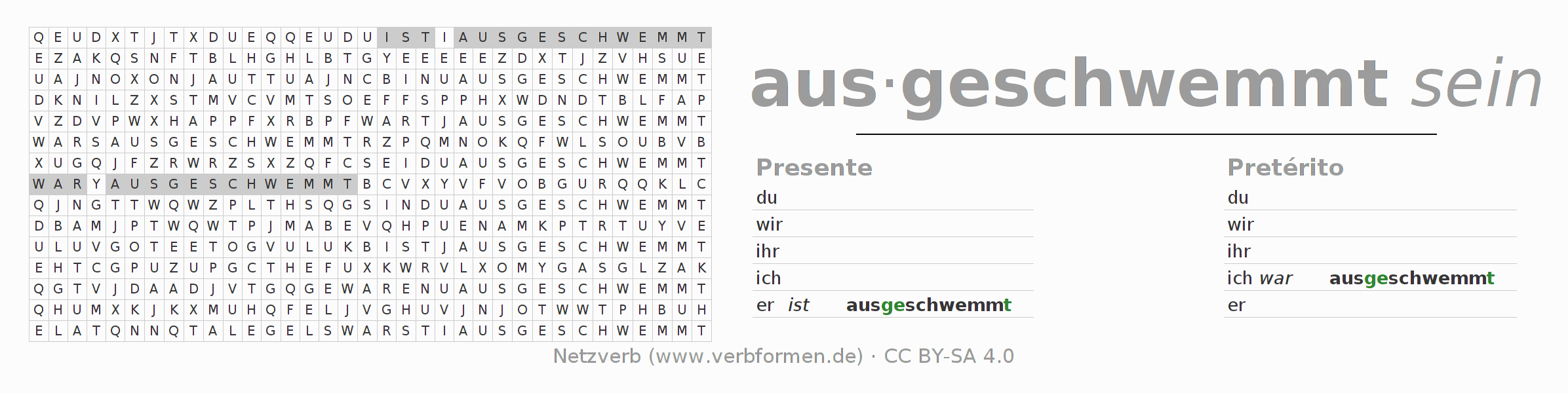 Con este juego de palabras cruzadas puedes aprender de manera desafiante la conjugación del verbo alemán ausschwemmen.