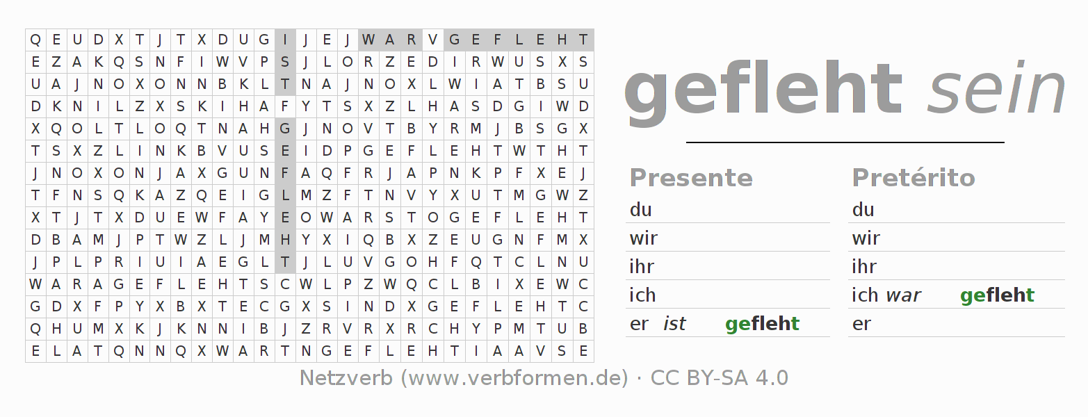 Las tablas de verbos muestran todas las construcciones del verbo flehen de forma clara en una tabla.