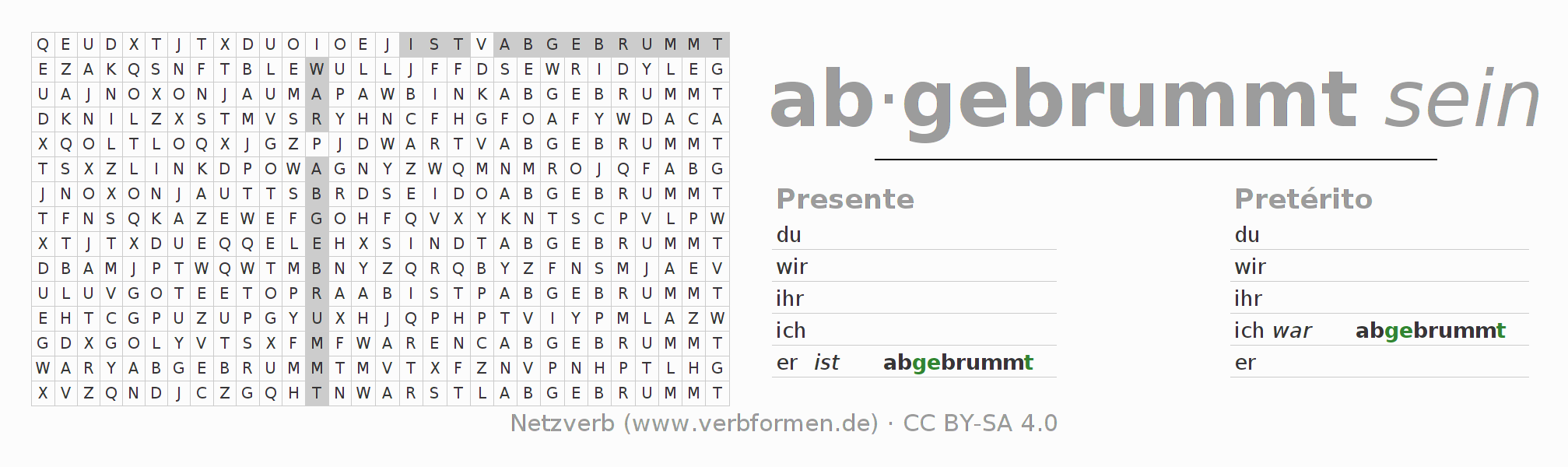 Juego de palabras cruzadas para todas las construcciones del verbo alemán abbrummen (hat)