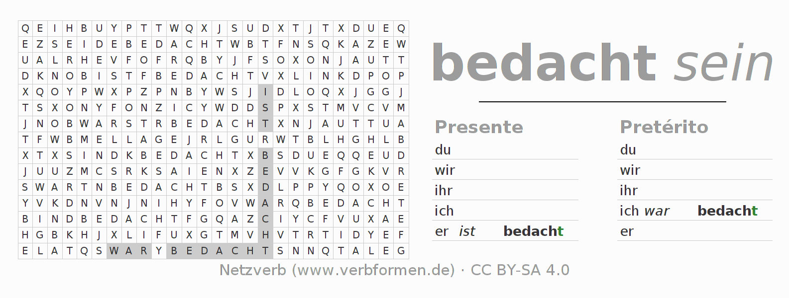 Juego de palabras cruzadas para todas las construcciones del verbo alemán bedachen