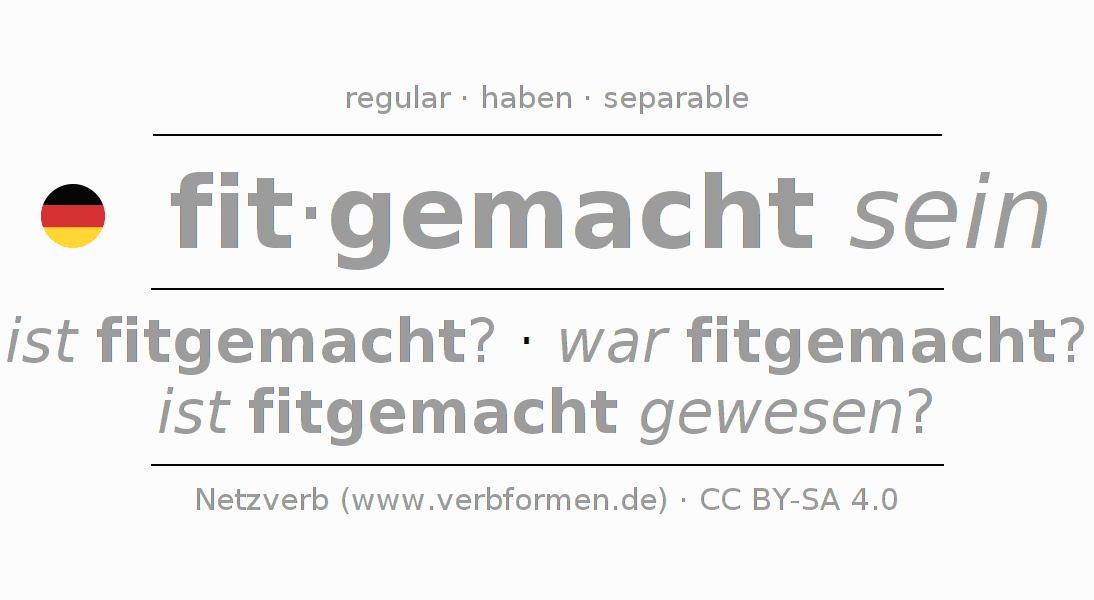Tablas de conjugación con todas las construcciones del verbo fitmachen..
