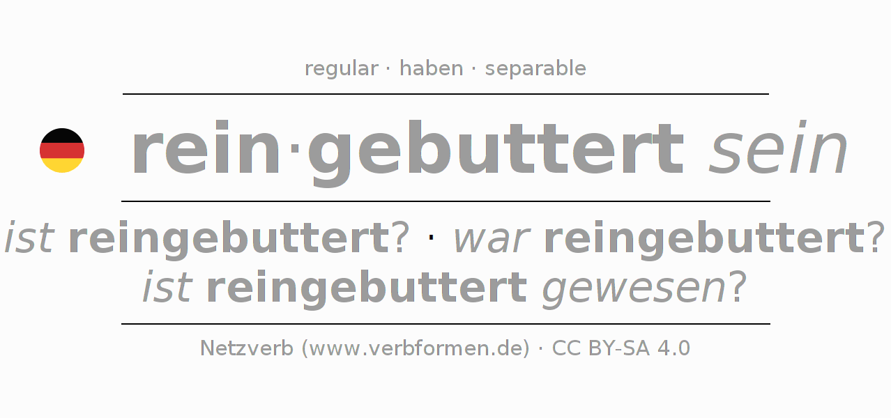 Las tablas de verbos muestran todas las construcciones del verbo reinbuttern de forma clara en una tabla.
