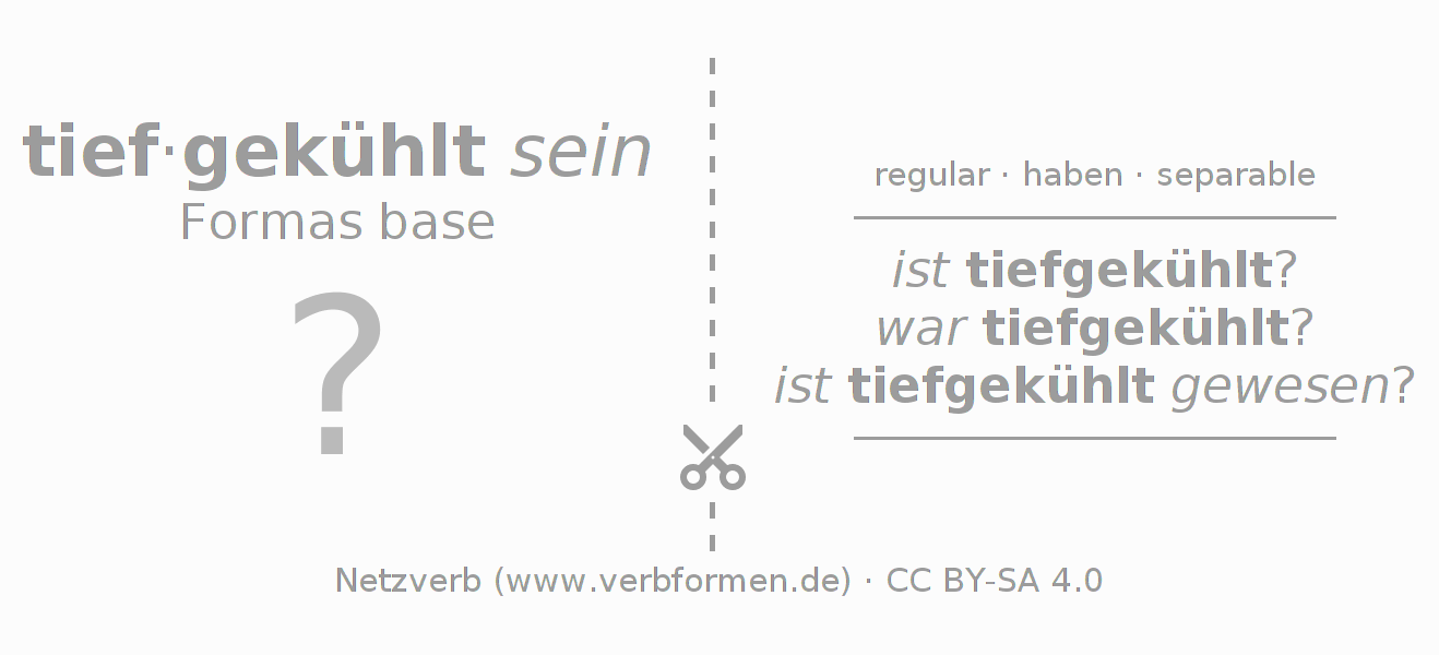 Las hojas de trabajo te ayudan para practicar con la conjugación de los verbos tiefkühlen en la escuela o de forma autodidacta. El material de estudio es Open Educational Resources (OER), es decir, libre de licencias CC BY-SA 4.0 y pude ser descargado y utilizado de forma gratuita, por ejemplo para la escuela. Con este fin tenemos para ti varios tipos de hojas de trabajo para los verbos tiefkühlen en forma de tablas de conjugación, acertijos y juegos. Todo el material esta disponible de forma gratuita para descargas PDF, imágenes y paginas web interactivas. Junto con los ejercicios hay innumerables ejemplos tiefkühlen que te ayudan en el uso de los verbos.