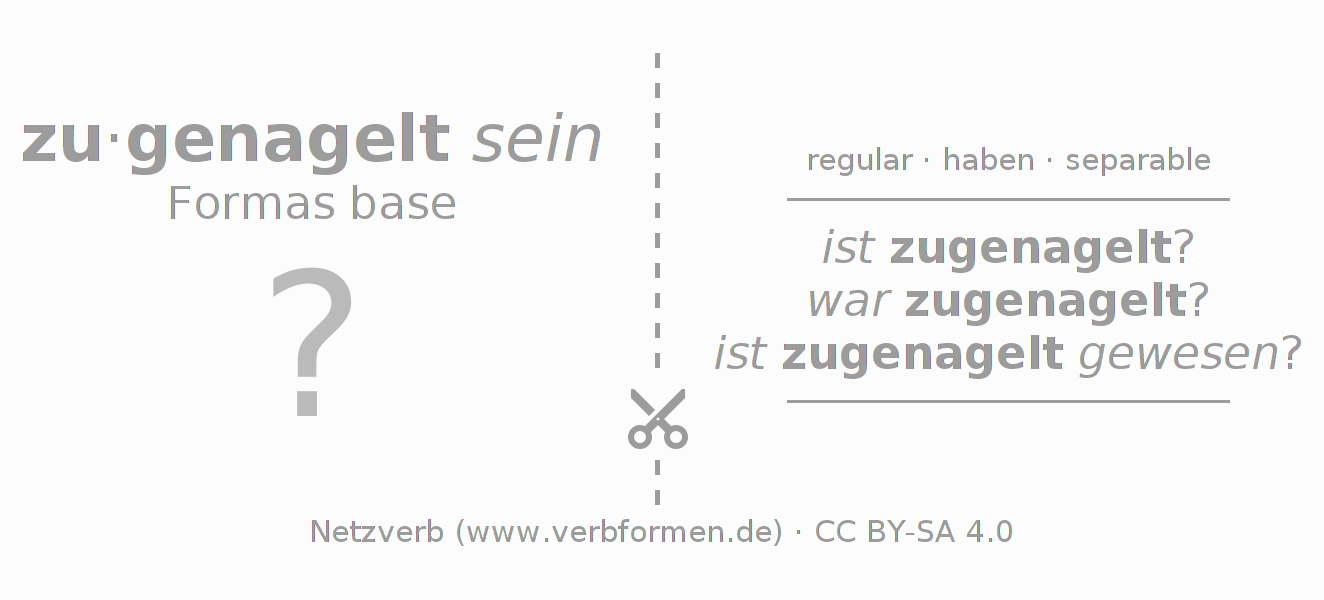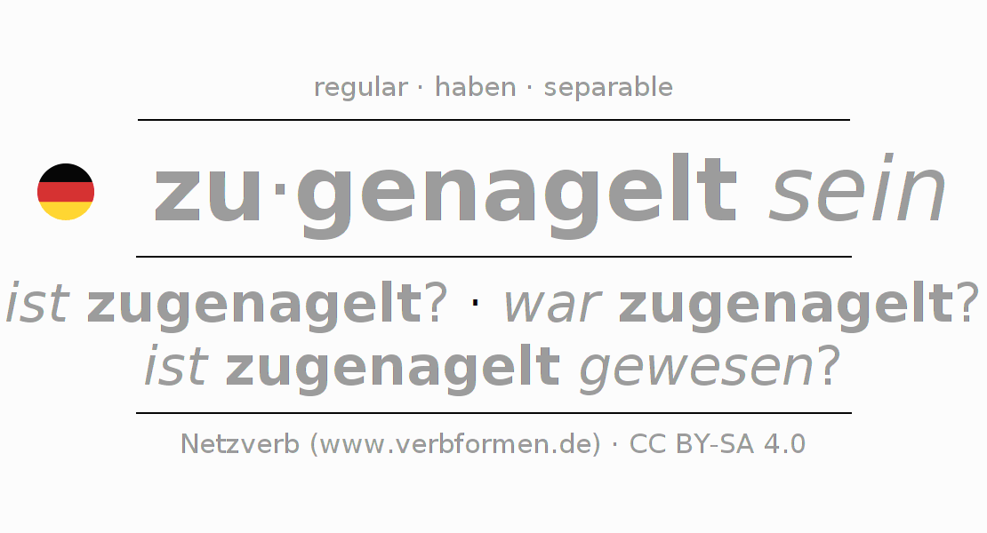 Las tablas de verbos muestran todas las construcciones del verbo zunageln de forma clara en una tabla.