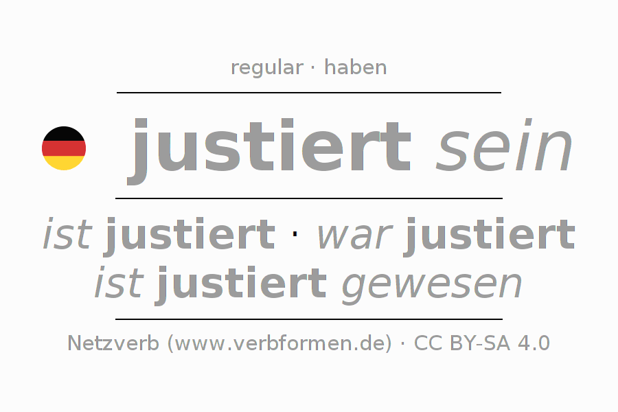 Las tablas de verbos muestran todas las construcciones del verbo justieren de forma clara en una tabla.