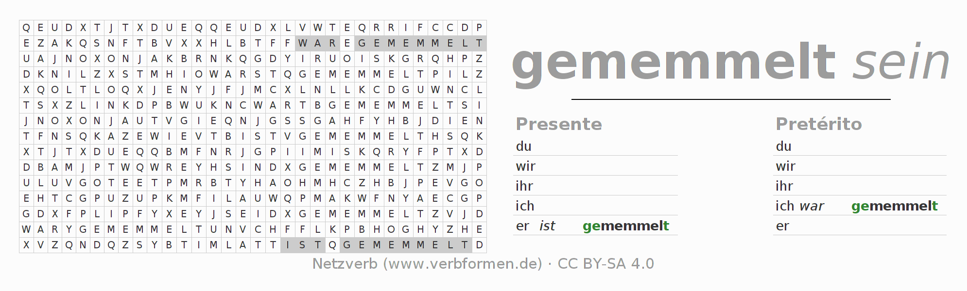 Juego de palabras cruzadas para todas las construcciones del verbo alemán memmeln