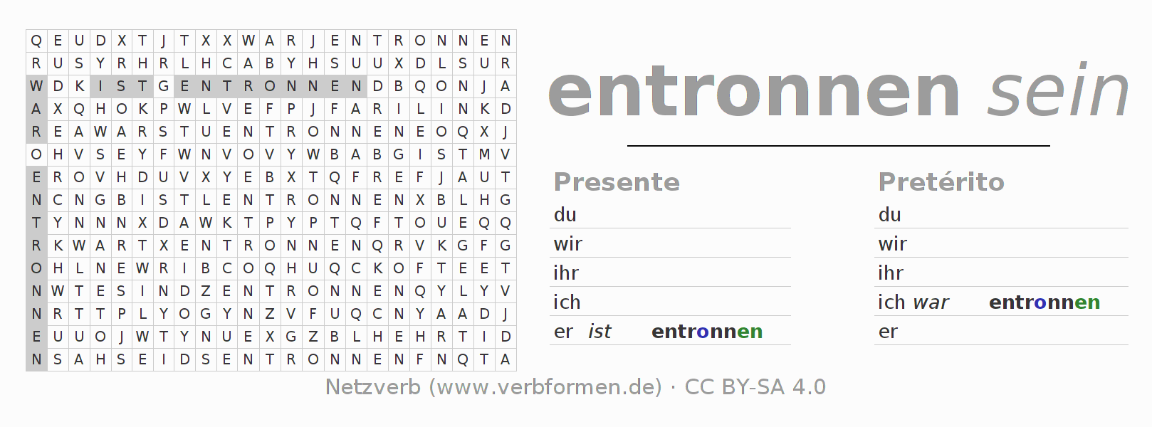 Con este juego de palabras cruzadas puedes aprender de manera desafiante la conjugación del verbo alemán entrinnen.