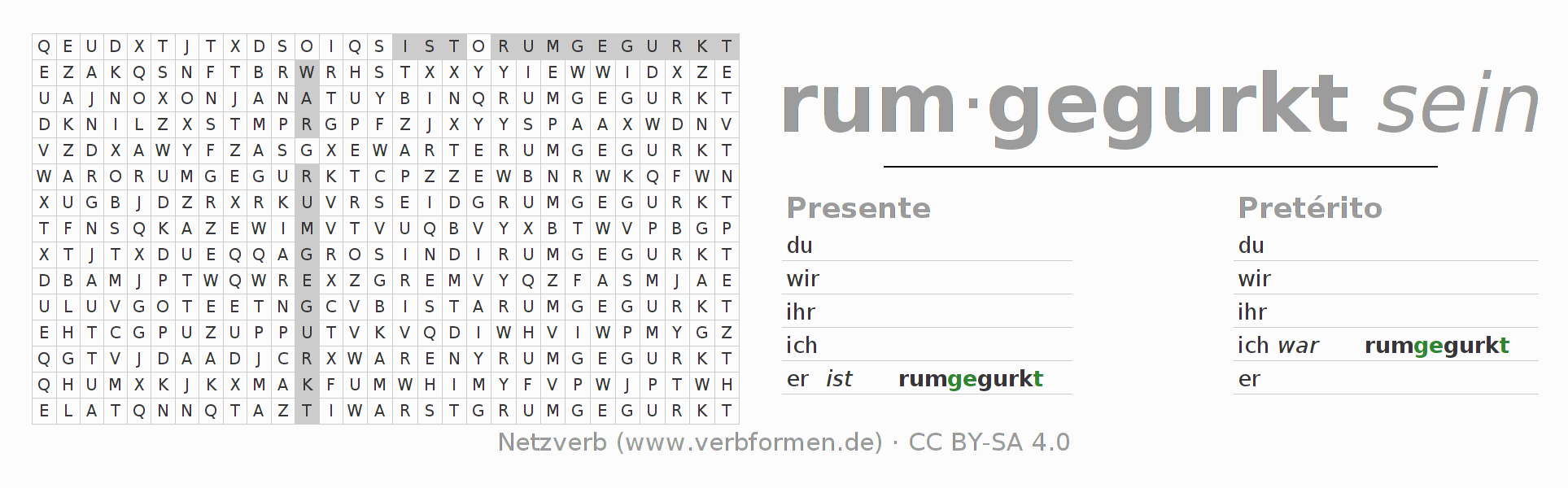 Juego de palabras cruzadas para todas las construcciones del verbo alemán rumgurken (ist)