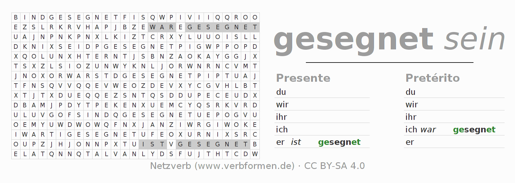 Juego de palabras cruzadas para todas las construcciones del verbo alemán segnen