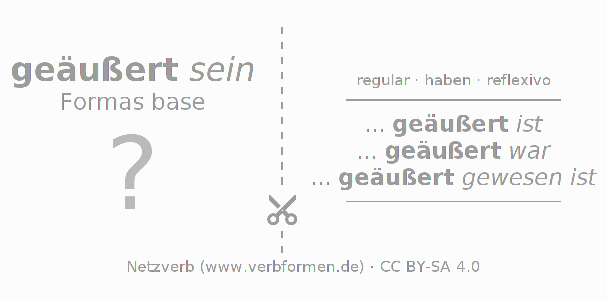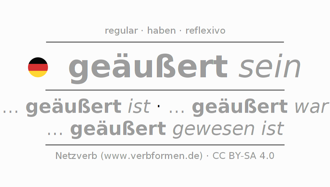 Las hojas de trabajo te ayudan para practicar con la conjugación de los verbos äußern en la escuela o de forma autodidacta. El material de estudio es Open Educational Resources (OER), es decir, libre de licencias CC BY-SA 4.0 y pude ser descargado y utilizado de forma gratuita, por ejemplo para la escuela. Con este fin tenemos para ti varios tipos de hojas de trabajo para los verbos sich äußern en forma de tablas de conjugación, acertijos y juegos. Todo el material esta disponible de forma gratuita para descargas PDF, imágenes y paginas web interactivas. Junto con los ejercicios hay innumerables ejemplos äußern que te ayudan en el uso de los verbos.
