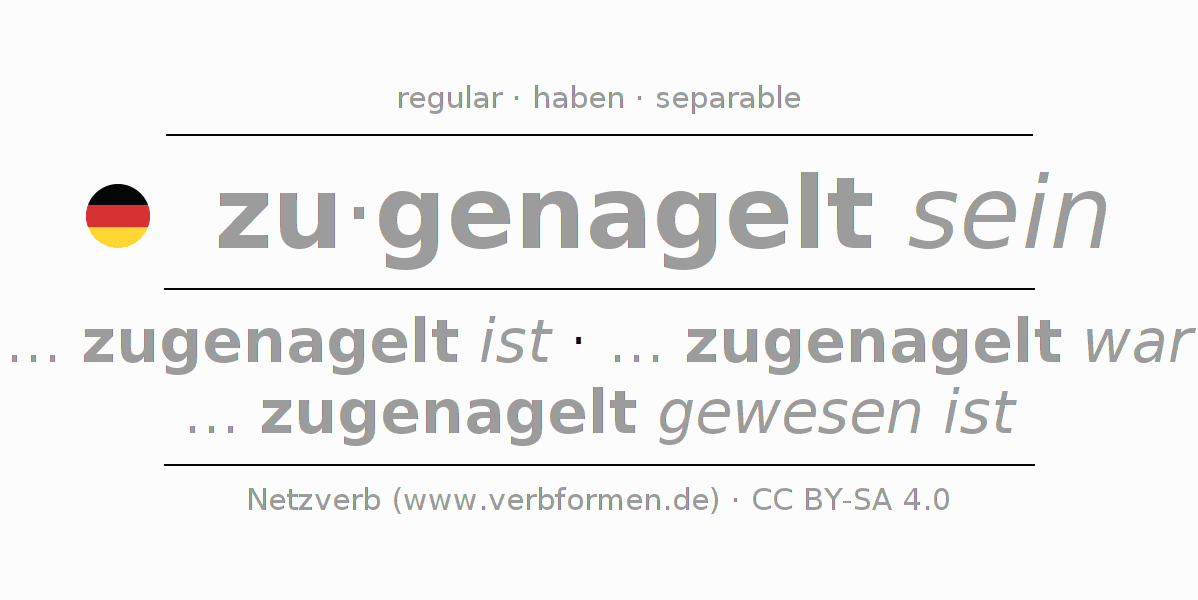 Las tablas de verbos muestran todas las construcciones del verbo zunageln de forma clara en una tabla.