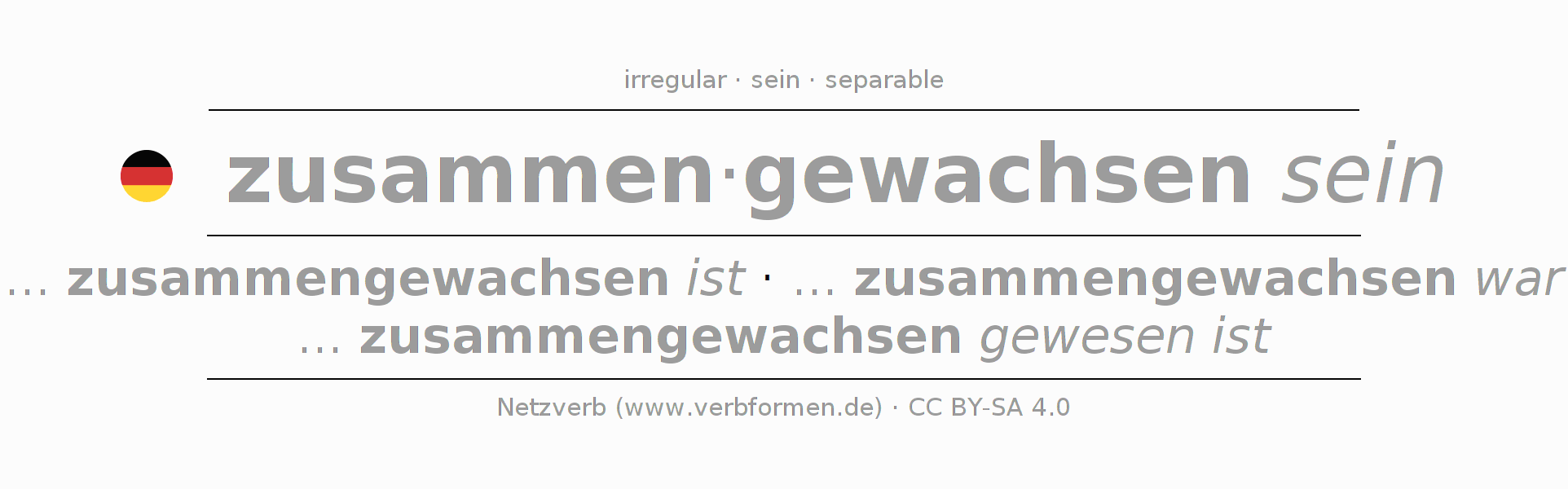 Las tablas de verbos muestran todas las construcciones del verbo zusammenwachsen de forma clara en una tabla.
