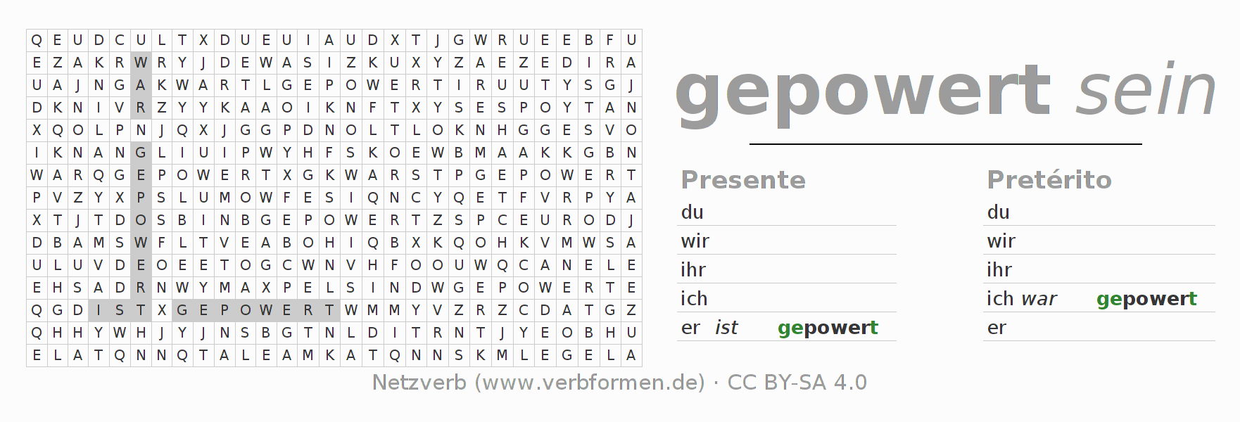 Juego de palabras cruzadas para todas las construcciones del verbo alemán powern
