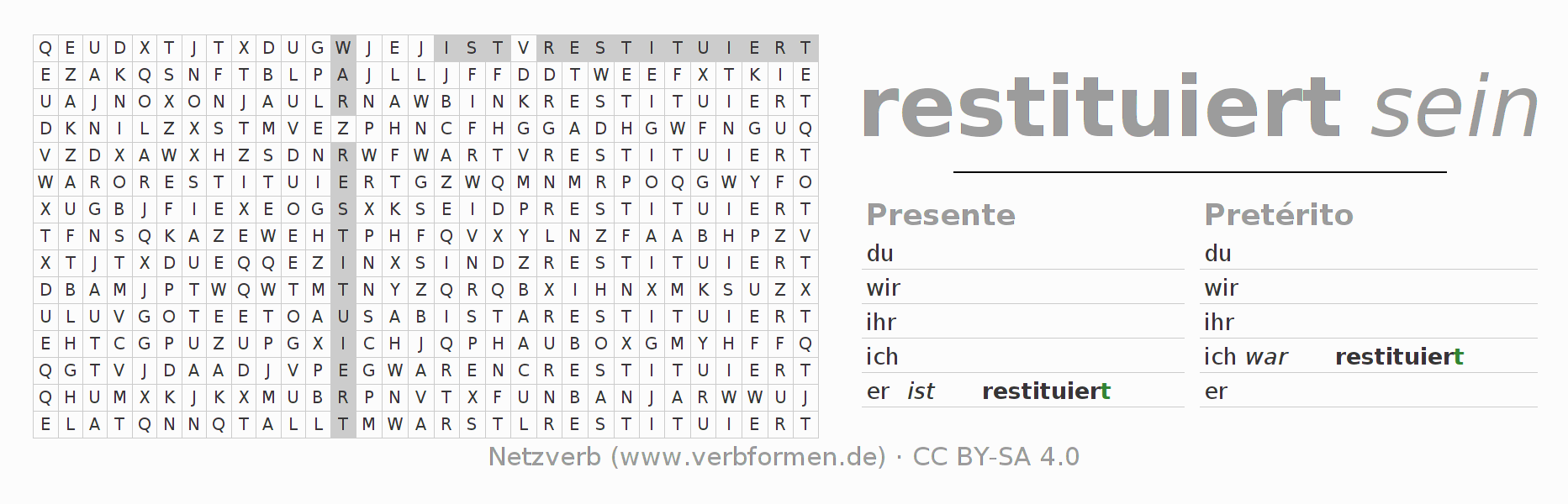 Juego de palabras cruzadas para todas las construcciones del verbo alemán restituieren
