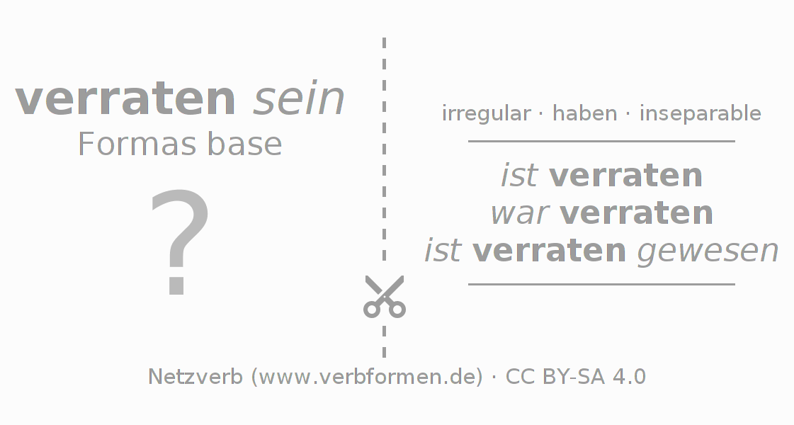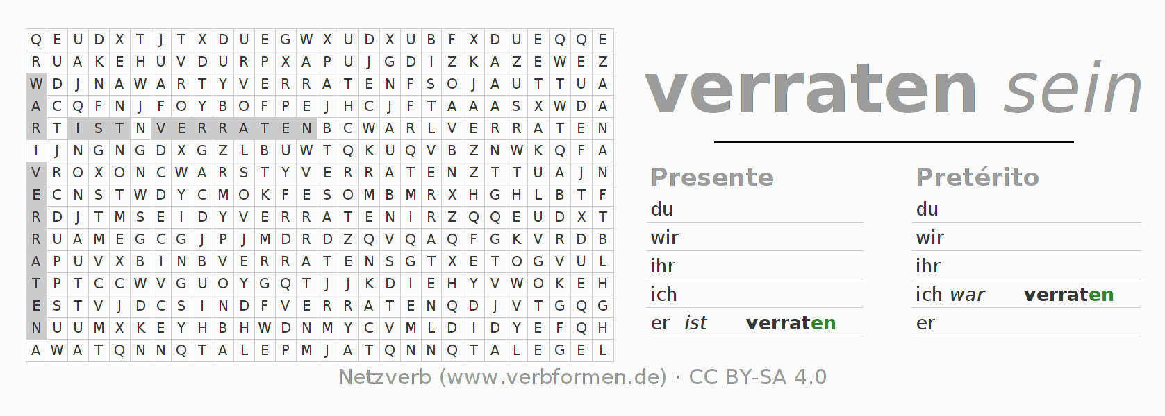Las tablas de verbos muestran todas las construcciones del verbo verraten de forma clara en una tabla.