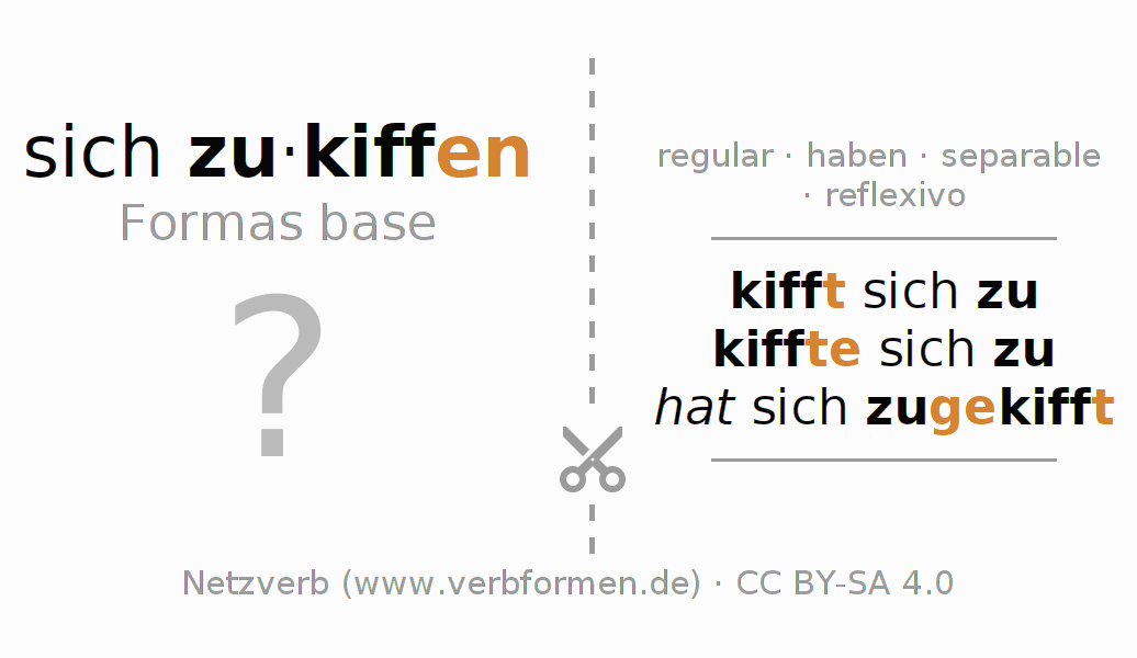 Las tablas de verbos muestran todas las construcciones del verbo sich zukiffen de forma clara en una tabla.