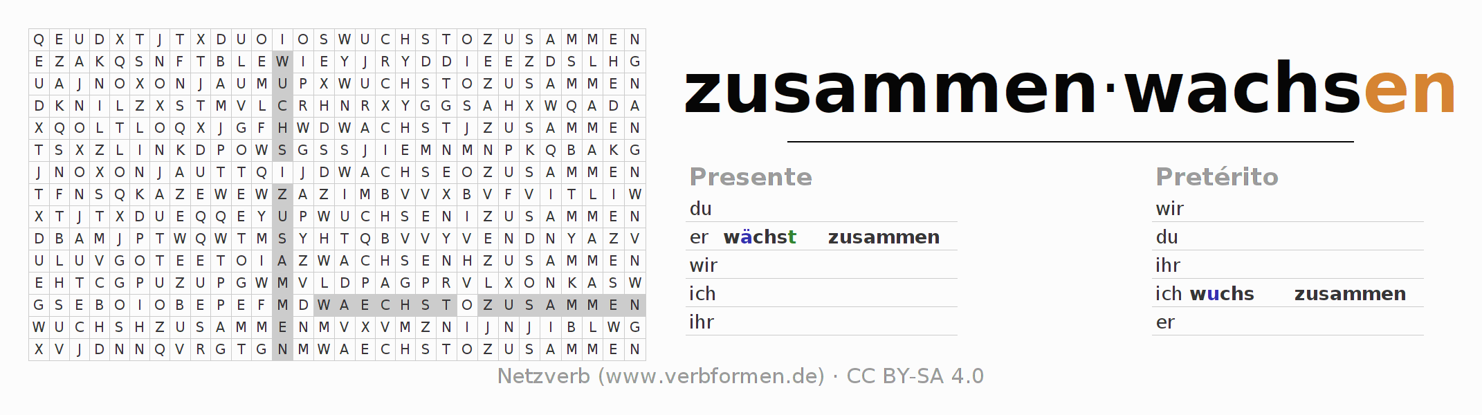 Juego de palabras cruzadas para todas las construcciones del verbo alemán zusammenwachsen