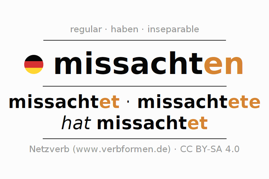 - Pasado perfecto: ich habe missachtet, du habest missachtet, er habe missachtet, wir haben missachtet, ihr habet missachtet, sie haben missachtet