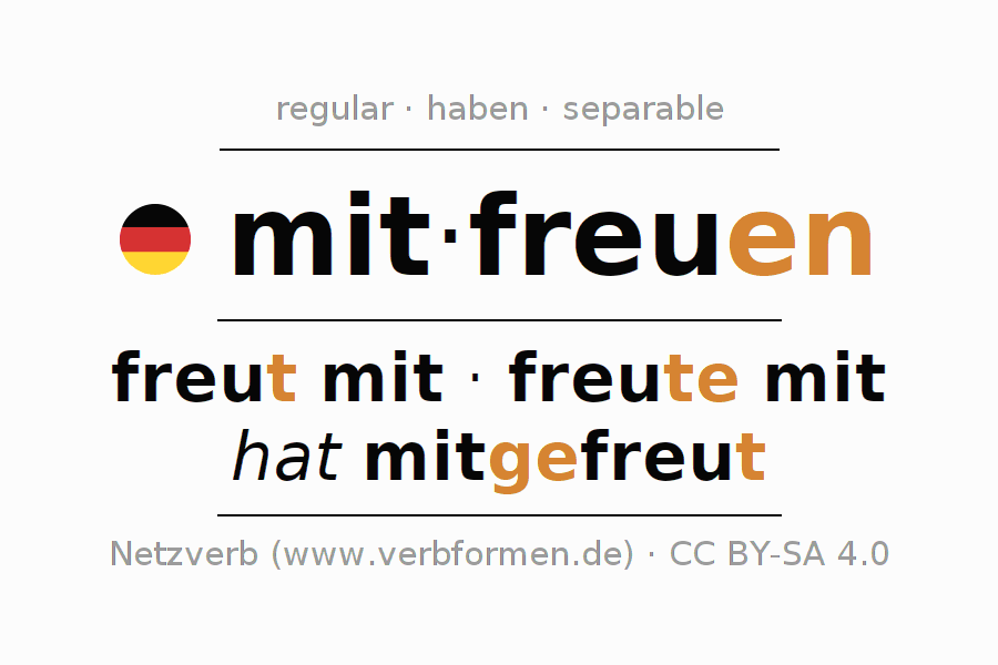 - Pasado perfecto: ich habe mitgefreut, du hast mitgefreut, er hat mitgefreut, wir haben mitgefreut, ihr habt mitgefreut, sie haben mitgefreut