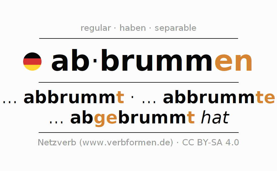 - Presente: brumm(e) (du) ab, brummen wir ab, brummt (ihr) ab, brummen Sie ab