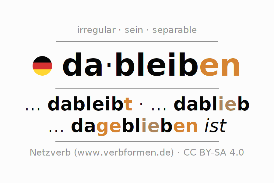 - Presente: ... ich dableib(e), ... du dableibst, ... er dableibt, ... wir dableiben, ... ihr dableibt, ... sie dableiben