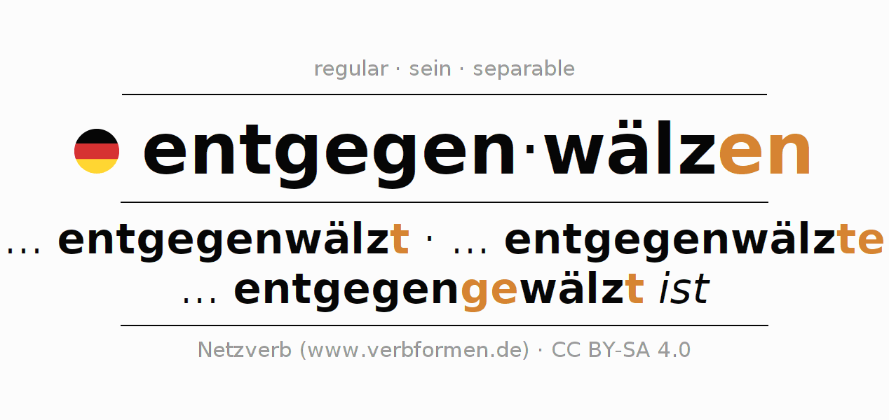 | wir | ... entgegenwälzen | ... entgegenwälzten | ... entgegenwälzen | ... entgegenwälzten | wälzen entgegen |