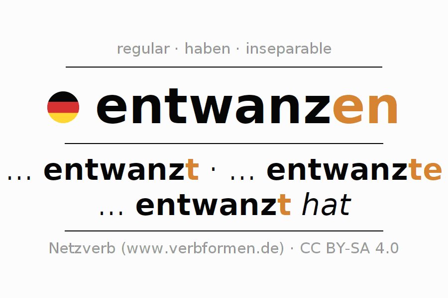 - Presente: entwanz(e) (du), entwanzen wir, entwanzt (ihr), entwanzen Sie