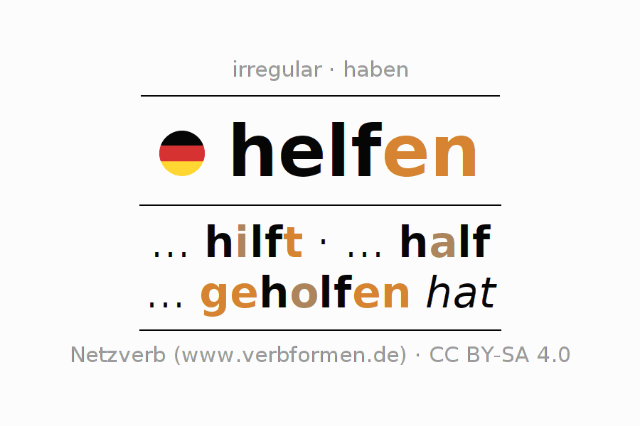 - Presente: hilf (du), helfen wir, helft (ihr), helfen Sie