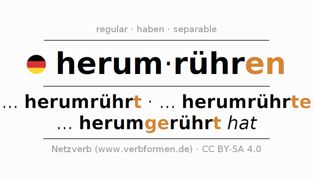 ... herumrührt · ... herumrührte · ... herumgerührt hat