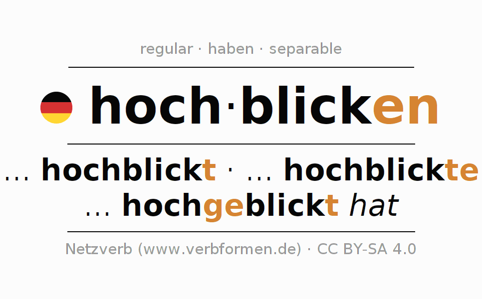 - Presente: blick(e) (du) hoch, blicken wir hoch, blickt (ihr) hoch, blicken Sie hoch