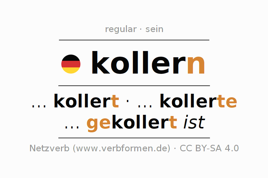 - Presente: ... ich koll(e)r(e), ... du kollerst, ... er kollert, ... wir kollern, ... ihr kollert, ... sie kollern