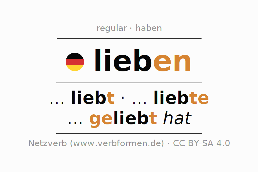 - Presente: lieb(e) (du), lieben wir, liebt (ihr), lieben Sie