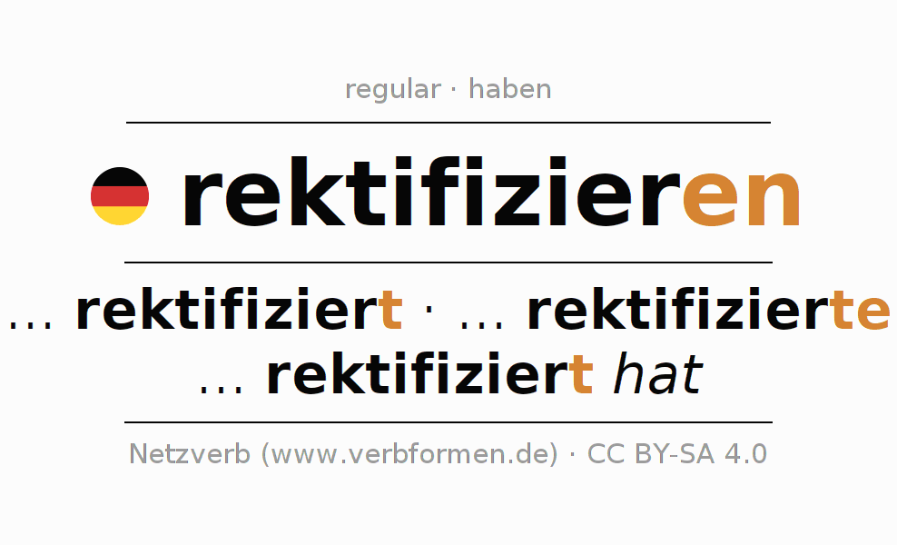 - Infinitivo I: rektifizieren, zu rektifizieren