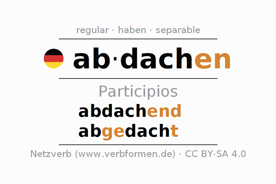 Los participios de abdachen (cubrir, descender) son: abdachend, abgedacht