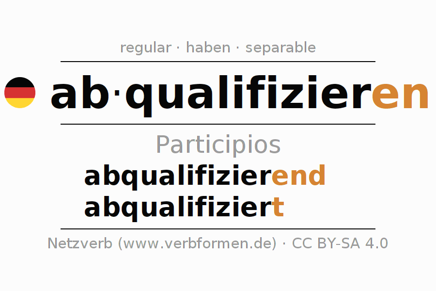 El verbo abqualifizieren, conjugado completamente en todas las personas y números gramaticales en Participio Presente Pasado perfecto.