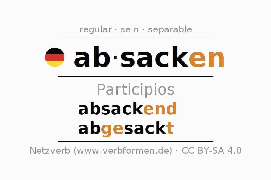 Los participios de absacken (caer, hundirse) son: absackend, abgesackt